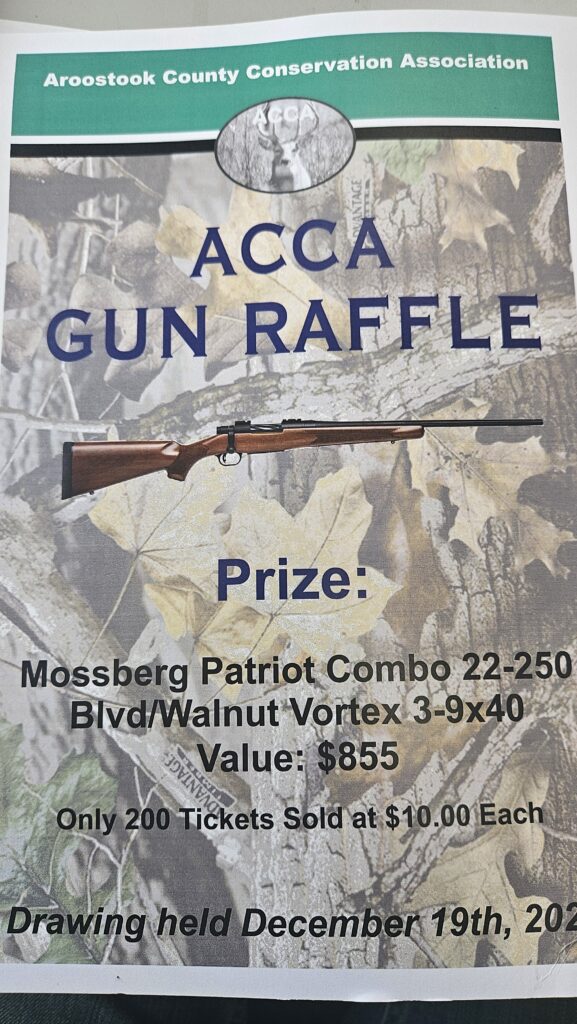 Drawing for .22.250 Mossberg Patriot w/Vortex Scope. Raffle to be held during December 19th, 2025 membership meeting. Inquire for tickets.